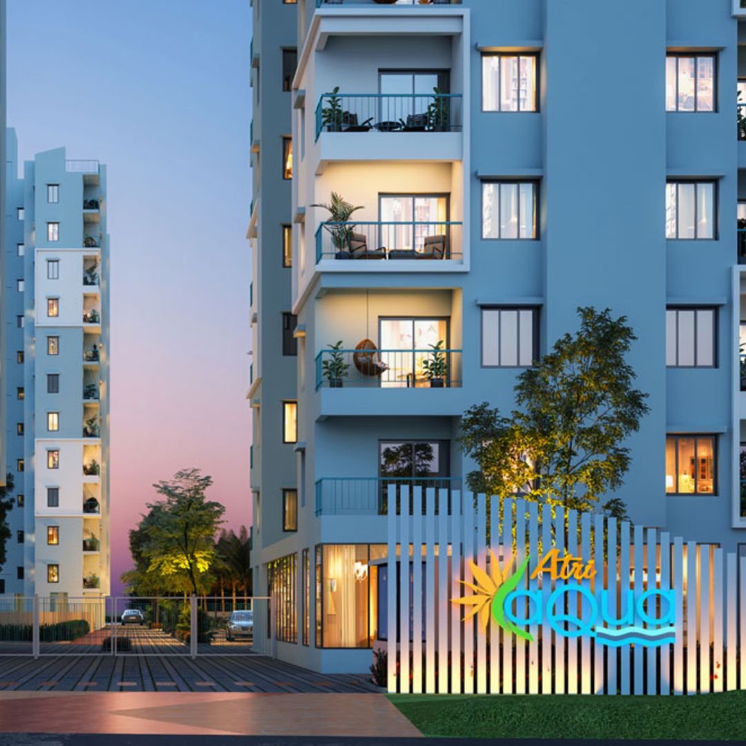 - Atri Aqua consists of 5 towers, each with 11 floors, offering around 370 exclusive units.